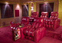 Не обязательно специально выделенное помещение в доме или квартире, оснащается оборудованием и удобной мебелью. Многофункционально. Предназначено для просмотра кино, прослушивания музыки, компьютерных игр, домашних концертов.